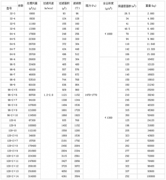 本系列產(chǎn)品共有33種規(guī)格,每室的袋有32、64、96、128袋四種,濾袋長(zhǎng)度有2450mm和3060mm兩種,收塵效率可達(dá)99.9%以上,凈化后氣體的含塵濃度小于100mg/m3(標(biāo))本系列收塵器如用于寒冷地區(qū),當(dāng)室外采暖計(jì)算溫度≤-25℃時(shí),要設(shè)熱裝置。